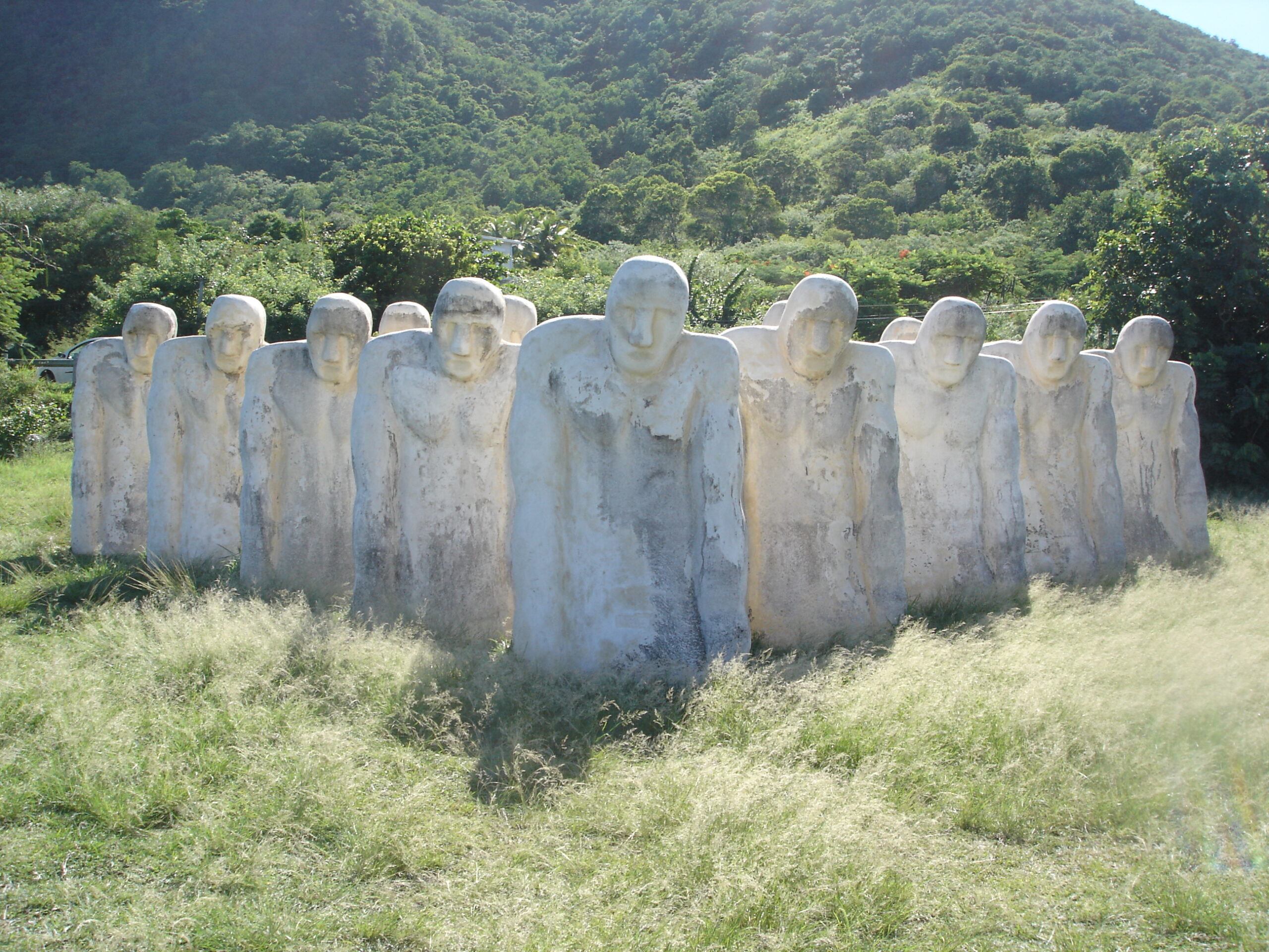 Ces sculptures représentent un ensemble de quinze bustes orientées au cap 110 (est-sud-est), en direction de l’Afrique et du golfe de Guinée, d’où leur nom. Elles représentent des personnages affligés, disposés de manière serrée, en triangle. Elles sont identiques, avec le visage accablé, les yeux baissés vers la terre et la mer. L’artiste a ainsi voulu faire référence à la foule des victimes anonymes de l’esclavage.
