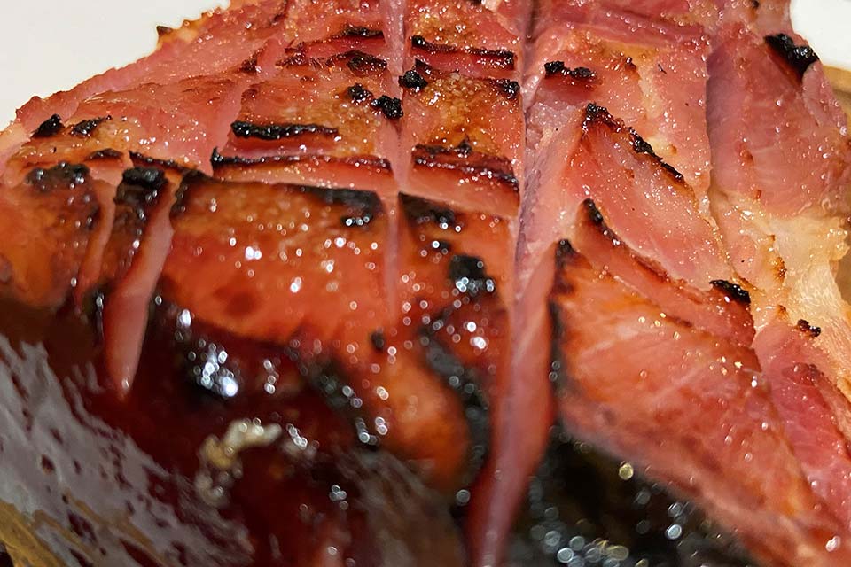 Enfourner pendant 30 minutes, puis positionner le four en position gril pour poursuivre la cuisson encore 10 minutes. En cours de cuisson, bien arroser bien le jambon avec le jus.