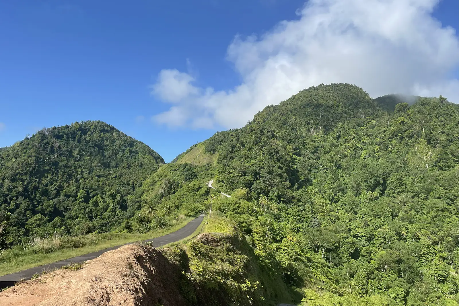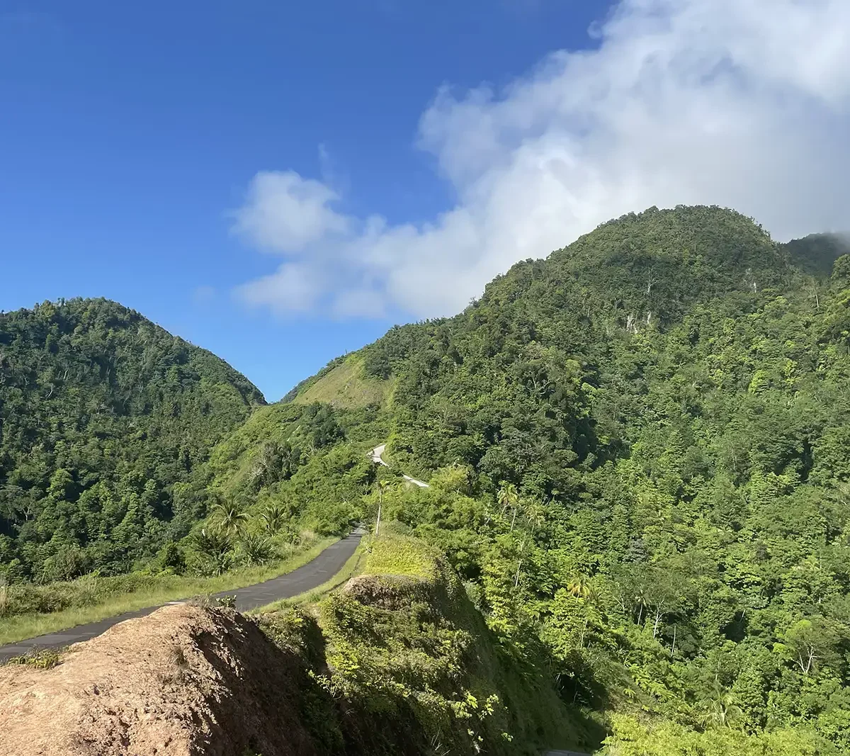 Tout au long de l’ascension, la végétation se fait de plus en plus dense, offrant de superbes panoramas sur la baie de Soufrière et la côte sud. Le chemin, parfois escarpé, alterne entre sections forestières, clairières et anciens terrains cultivés.