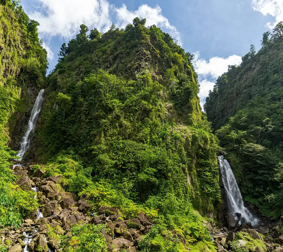 Vous embarquez à bord du ferry pour environ deux heures de traversée. Dès votre arrivée à Roseau, la capitale, vous sentirez l’atmosphère changer : ici, tout semble plus brut, plus vivant, plus vrai.
