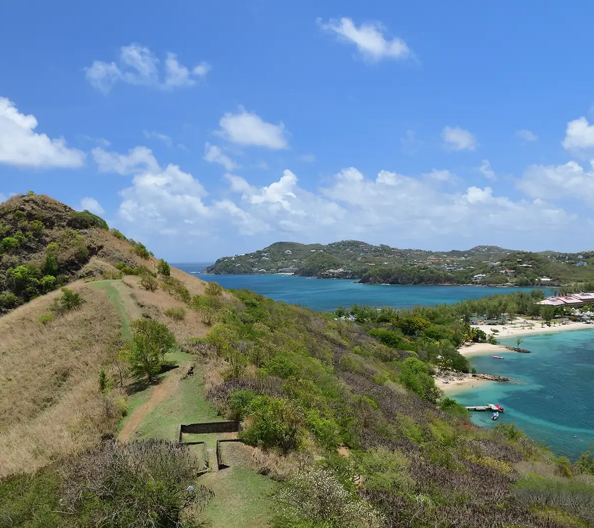 Pour vos premiers pas sur l’île, laissez-vous envelopper par l’atmosphère paisible de la région de Vieux Fort, encore préservée, entre collines verdoyantes et rivages ourlés d’écume. Flânez le long de Sandy Beach, vaste étendue de sable blond balayée par la brise. Ici, tout invite à la détente : marche pieds nus, bain dans une eau tiède et transparente, ou simple farniente à l’ombre d’un cocotier.