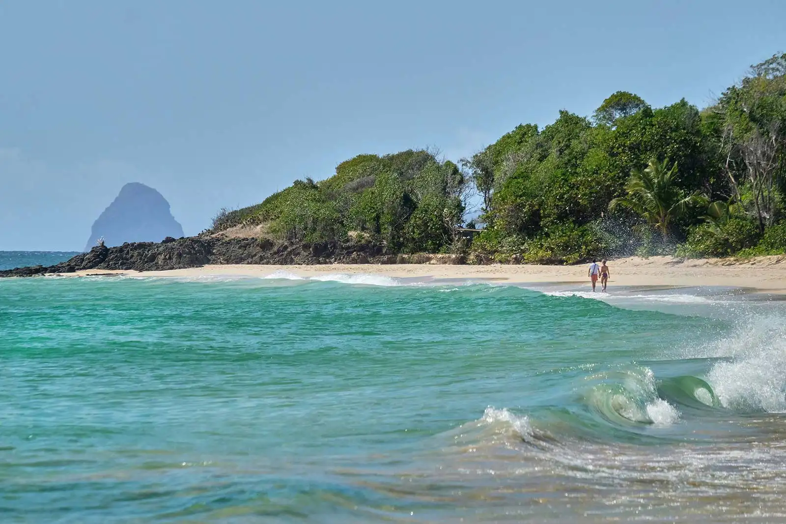 Un bain à deux dans son bassin clair s’impose avant de rejoindre la plage préservée de l’Anse Couleuvre, ourlée de cocotiers.