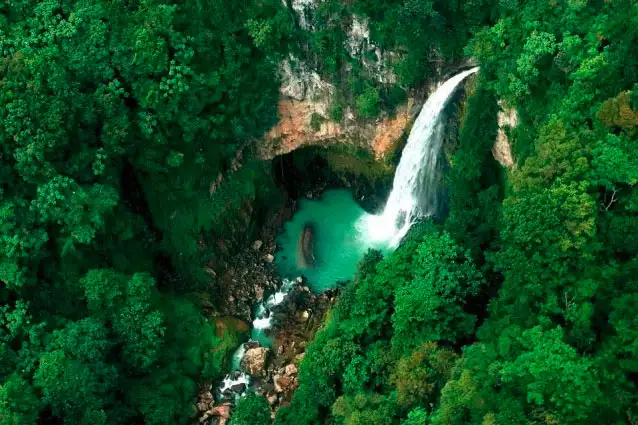 L’après-midi, la découverte se poursuit par la visite de l’Emerald Pool, une cascade emblématique classée au patrimoine mondial de l’UNESCO. Après une courte marche à travers la forêt tropicale, vous atteignez un bassin d’un vert émeraude où il est possible de se baigner, entouré d’une végétation luxuriante.
